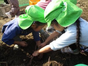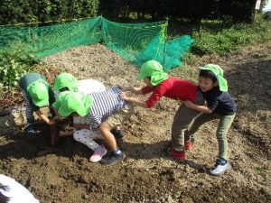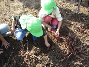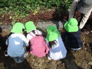 アトムグループ内の幼稚園の園児さんが来苑され、サツマイモの収穫体験を行いました👦🏻👧🏻