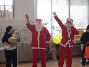 風船バレーの後は、サンタさんにプレゼントをもらって皆さん